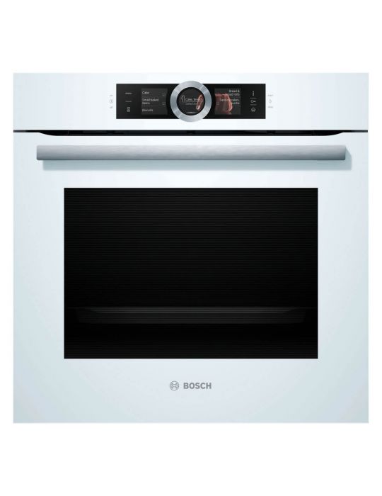 BOSCH, HSG636BW1, Horno, Multifunción con vapor 100%, A+, Encastrable, 60 cm, 71 litros, 12, Panel trasero autolimpiante, Ap. Abatible, Cristal blanco, Display TFT con imágenes y textos, Asistente de cocinado Assist, Reloj electrónico con programación de