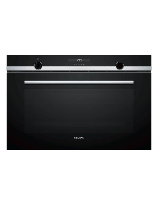 SIEMENS, VB578D0S0, Horno, Multifunción ancho 90cm, A+, Encastrable, 60 cm., 112 l., 10 F, Pirólisis - humidClean, Ap. Abatible, Cristal negro/inox, Display LCD, Reloj electrónico con programación de inicio y paro, 1 varioClip rail, Mandos lightControl