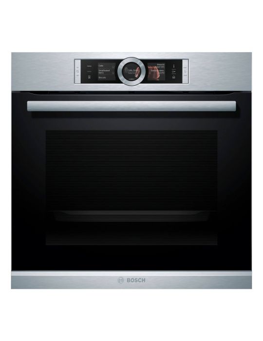 BOSCH, HSG636ES1, Serie 8, Horno, Multifunción con vapor 100%, A+, Encastrable, 60 cm., 71 l., 12 F, Asistente de limpieza, HC, Cristal negro/inox, Display TFT con imágenes y textos, Asistente de cocinado Assist, Reloj electrónico con programación de inic
