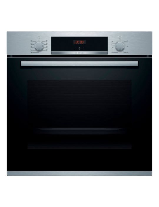 BOSCH | HBA512ES0 | Horno | Multifunción | A | Encastrable | 60 cm | 71 litros | 7 | Ap. Abatible | Cristal negro/inox | Display LED | Programación electrónica de paro | Railes 1 nivel | Mandos ocultables.