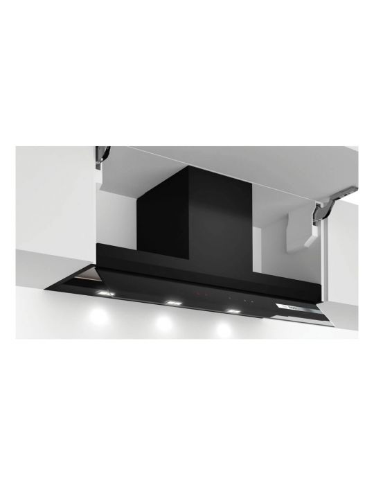 BOSCH, DBB97AM60, Campana, Decorativa integrada, B, 90 cm., 749 m3/h, Cuerpo y cristal negro, TouchControl, inicio autom apert. cristal, LEDs, filt. Aluminio