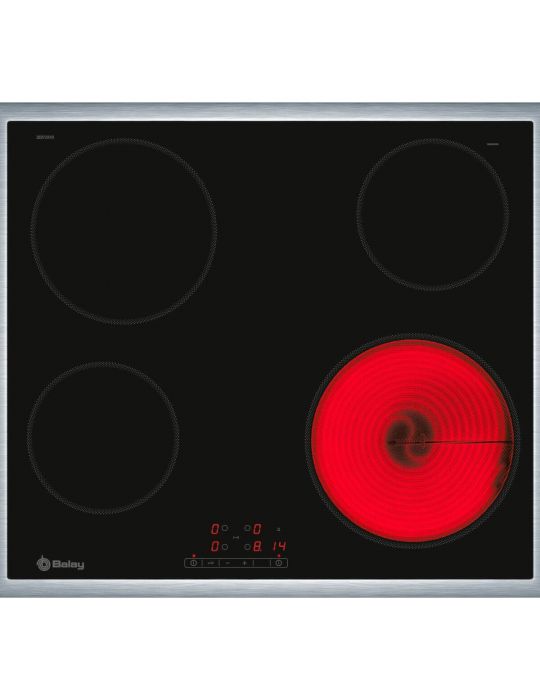 BALAY, 3EB720XR, Encimera, Vitrocerámica, Encastrable, 60 cm, 4, Negra/Marco inoxidable, Control táctil de fácil uso