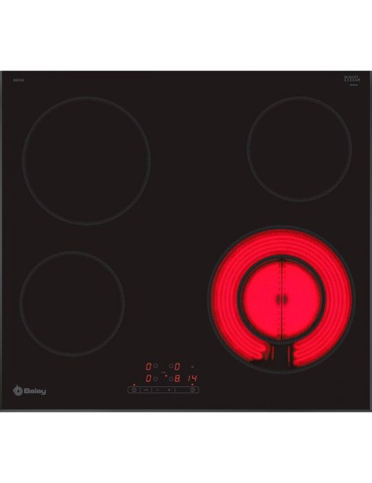 BALAY, 3EB721LR, Encimera, Vitrocerámica, Encastrable, 60 cm, 4, Negra/Biselada, Control táctil de fácil uso, zona doble