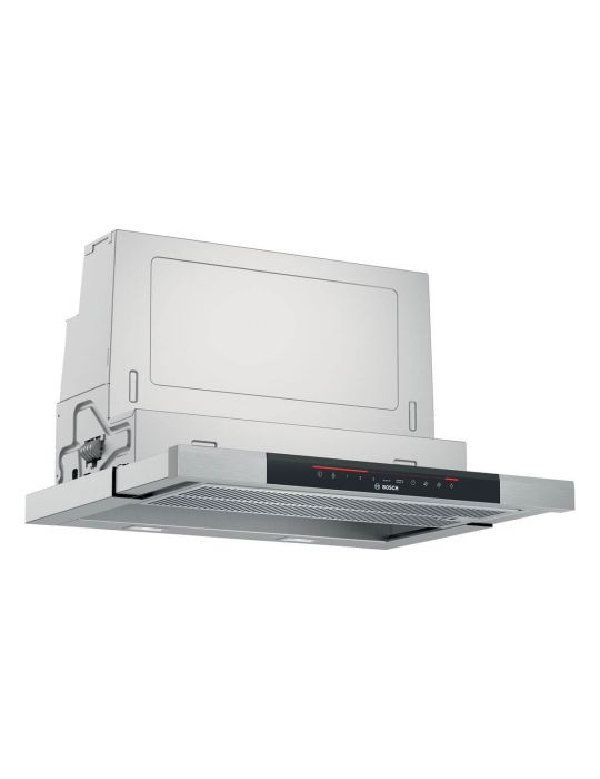 BOSCH, DFS067K51, Campana, Telescópica Acero, A, Encastrable, 60 cm., 717 m3/h, Acero, Motor EcoSilence Drive, EcoSensor, TouchControl, filtros de acero, LEDs
